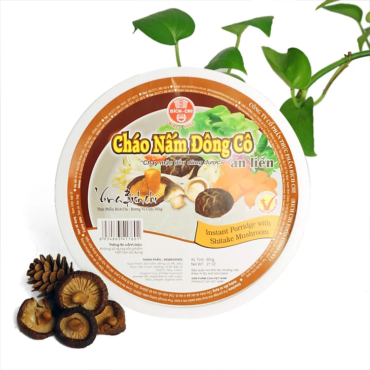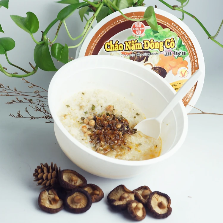 Cháo nấm đông cô Bích Chi được chế biến từ những hạt gạo có chất lượng tốt nhất kết hợp với nấm đông cô cùng các gia vị phù hợp mang đến một sản phẩm an toàn và tiện lợi dành cho mọi người. Khi ăn bạn sẽ cảm nhận được sự thanh khiết của gạo cùng hương thơm của nấm đông cô, kết hợp cùng sự đậm đà của gia vị mang lại một cảm giác mới lạ.