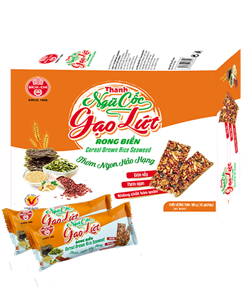 Thành phần: Gạo lứt huyết rồng, hạt điều, hạt bí xanh, yến mạch, mè, rong biển, mạch nha, muối, chất điều vị, hương vani tổng hợp.